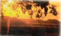 观平顶山景色,以日落时为最佳,故称之为平台落日。夕阳西坠,落日的余辉为平顶山抺上一层胭脂红,使群山显得格外妩媚,游客能清晰地观赏到太阳漫漫沉入草原大地的景色。晚霞中,山凹里人家炊烟袅袅,更令游人思绪万千。