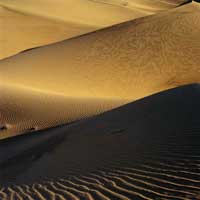 到沙漠去旅游,充满艰辛,但也其乐无穷。因为沙漠都是深处内陆,远离海洋,气候干燥,日照强烈,雨量稀少,日夜温差大,风沙频繁,在这里旅游,要学会克服困难,学会生存。但沙漠生态环境也有许多特点,充满神奇。这里可以体会"早穿皮 袄午穿纱,围着火炉吃西瓜"的滋味,因为沙漠温差大,如塔克拉玛干沙漠平均年温差为30℃-50℃,绝对温差可达50℃-60℃以上。这里可以看到许多奇特的地形,如雅丹地貌、风蚀蘑菇、摇摆石、蜂窝石以及新月形沙丘等等。沙漠里严酷的生态环境,仅能生长低矮稀疏,适应干旱地区条件,具有干旱地区特色的植物,有的叶子缩小,或变成棒状、刺状;有的为了减少蒸腾而气孔下陷;有的营养器官变为肥肉质,以贮蓄水分;有的为了抵抗夏天强烈阳光,枝干表面变成灰白色,如白刺、梭梭等。动物要在沙漠里生活,则要能保持液体,耐饥耐渴。被称为"沙漠之舟"的骆驼就有此特点。它几天不吃不喝,驮载150-250公斤的重物,一天能够走30-40公里。到沙漠去旅游,可要做好充分的准备。