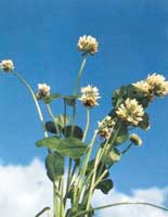 白三叶草,作为一种地被植物,在北京三环路,在天津经济开发区,在古城西安,在石油城东营等地的绿化中,都得到广泛的应用,而且有发展趋势。 这是一种豆科植物,作为地被植物不仅有覆盖地表的特点,而且有固氮,提高土壤氮素水平的能力。白三叶草,茎匍匐,喜温凉湿润气候,繁殖快,侵占性强,且成坪快,耐践踏,在一般土壤中生长良好,也耐一定的盐碱和粗放管理,因而被称之为一箭双雕的地被植物。很有推广前景。但开花后,穗枯萎,不很美观。