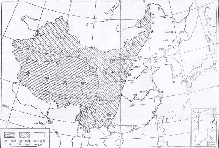这是我国陆地的绝大部分地区,除部分山区、盆地、平原、河流外,主要为四大高原占据,这四大高原即青藏高原、云贵高原、内蒙古高原和黄土高原。由于这四大高原生态环境各不相同,所以,在实施西部开发战略时,如何从具体条件出发,来采取相应的有针对性的措施非常重要。