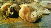 象海豹又叫象形海豹和海象,是个头最大的海豹,雄性体长 4~6米,体重 2~3.5吨;雌性小于雄性,体重为雄性的一半,大夫小妻,极易区别。其数量约70万头。