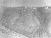 石流坡的物质来源及产生与石海大体相似,但二者出现的地貌部位不同。石海多见于平缓的山项,石流坡则出现在山坡。石流坡的岩块、碎屑,除在斜坡原地经寒冻风化产生外,还有在重力作用下来自山项的。这样就决定了石流坡的组成物质是上细下粗,坡上方多是小的岩屑,坡下方主要是大的岩块。