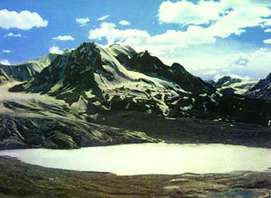 雅鲁藏布江源头之一的木穹宗木冰川的冰碛湖