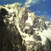横断山脉 玉龙山远眺 玉龙山冰川 西藏东部与四川、云南西部的横断山脉,最高峰为贡嘎山,海拔7590米,是川西滇北横断山系冰川最发育的地区。横断山脉地处西南季风和东南季风交绥之地。雪线大体是西低东高,海拔为5200-5400米,粒雪盆区雪崩频繁,冰川末端已伸入落叶针叶林带,最低海拔2850米。 海拔6000米的玉龙雪山,位于云南北部,是我国冰川分布纬度最低(约北纬27°10ˊ)的地区,雪线高度5000米,只发育小型冰川和悬冰川。 [上一页] [下一页]