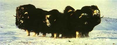 麝牛在危险来临时,围成圆阵