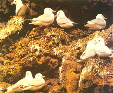 为防止狐狸偷袭,北极三趾鸥将巢建在峭壁上