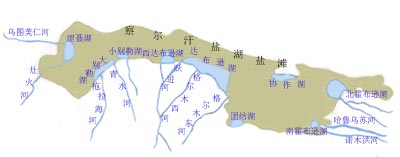 察尔汉盐湖是我国最大的固、液相并存的盐湖,位于柴达木盆地中部新生代沉降中心区,地跨青海省的格尔木市和都兰县。它由涩聂湖、达布逊湖、北霍布逊湖、南霍布逊湖、大别勒湖、小别勒湖、达西湖、协作湖、团结湖和东陵湖等10个常年型卤水湖和季节性卤水湖以及大片干盐滩组成。地面海拔2678-2683m,长168km,宽20-40km,面积4708.8