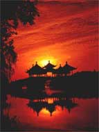 吹台俗称钓鱼台,相传清乾隆南巡时曾在此钓过鱼。透过吹台园洞,五亭桥,白塔映入眼帘。
