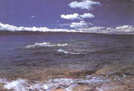 纳木错曾名腾格里海,藏语为“天湖”之意,它是第三纪喜马拉雅运动时期发生凹陷形成的高山湖泊。沿湖岸北东向的断裂构造崖岩清晰可见。滨湖东南部为高耸的念青唐古拉山,山地冰川发育,冰川融水径流形成的水系呈梳状排列。湖岸线与山脊走向大致平行,近似楔形,长轴呈北东-南西向延伸。湖水水位4718米,湖泊面积1961.5km2,湖水清澈明净,碧蓝如天。它是世界上最高的大型湖泊,素以海拔高、湖面大、景色瑰丽著称。