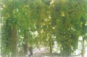 然而,就在其不远处的葡萄沟(在吐鲁番县城东北11公里处)是火焰山西侧的一条峡谷。沟的两侧山坡上虽寸草不生,但沟里却绿树成荫,葡萄架成片,潺潺流水,座座新房,一片旖旖风光。这里盛产无核葡萄,人称吐鲁番的葡萄“甘而不饴,酸而不酢,冷而不寒,味长汁多,除烦解渴”。