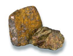 ¡¡¡¡»ÆÍ¿óµÄ»¯Ñ§³É·ÖÊÇCuFeS2£¬¾§ÌåÊôËÄ·½¾§ÏµµÄÁò»¯Îï¿óÎï¡£µ¥¸ö¾§ÌåºÜÉÙ¼û£¬¼¯ºÏÌ峣Ϊ²»¹æÔòµÄÁ£×´»òÖÂÃÜ¿é×´¡£»ÆÍÉ«£¬±íÃæ³£Óа߲µµÄÀ¶¡¢×Ï¡¢ºÖÉ«µÄïºÉ«Ä¤£¬ÌõºÛÂ̺ÚÉ«£¬½ðÊô¹âÔ󡣶Ͽڲβî×´»ò±´¿Ç×´£¬ÎÞ½âÀí¡£Ä¦ÊÏÓ²¶È3¡«4£¬Ð¡µ¶¿ÉÒÔ¿ÌÆÆ£¬ÐԴ࣬±ÈÖØ4.1¡«4.3¡£»ÆÍ¿óÒ×±»ÎóÈÏΪ»ÆÌú¿óºÍ×ÔÈ»½ð£¬µ«ÒÔÆä¸ü»ÆµÄÑÕÉ«ºÍ½ÏµÍµÄÓ²¶ÈÓë»ÆÌú¿óÏàÇø±ð£¬ÒÔÆäÂ̺ÚÉ«µÄÌõºÛ¡¢ÐԴ༰ÈÜÓÚÏõËáÓë×ÔÈ»½ðÏàÇø±ð¡£»ÆÍ¿óÊÇÌáÁ¶ÍµÄÖ÷Òª¿óÎïÖ®Ò»£¬Êǽö´ÎÓÚ»ÆÌú¿óµÄ×î³£¼ûµÄÁò»¯ÎïÖ®Ò»£¬Ò²ÊÇ×î³£¼ûµÄÍ¿óÎï¡£Ôڵرí·ç»¯×÷ÓÃÏ£¬»ÆÍ¿ó³£±äΪÂÌÉ«µÄ¿×ȸʯºÍÀ¶É«µÄÀ¶Í¿ó¡£