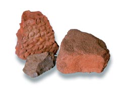 赤铁矿的化学成分为Fe2O3,晶体属三方晶系的氧化物矿物。与等轴晶系的磁铁矿成同质多象。单晶体常呈菱面体和板状,集合体形态多样,有片状、鳞片状(显晶质)、粒状、鲕状、肾状、土状、致密块状等。显晶质呈铁黑至钢灰色,隐晶质呈暗红色,条痕樱红色,金属光泽至半金属光泽,摩氏硬度为5.5-6.5,无解理,比重5.0-5.3。呈铁黑色、金属光泽的片状赤铁矿集合体称为镜铁矿;呈灰色、金属光泽的鳞片状赤铁矿集合体称为云母赤铁矿;呈红褐色、光泽暗淡的称为赭石;呈鲕状或肾状的赤铁矿称为鲕状或肾状赤铁矿。