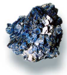 ¡¡¡¡À¶Í¿óµÄ»¯Ñ§×é³ÉCu2[CO3]2(OH)2£¬¾§ÌåÊôµ¥Ð±¾§ÏµµÄ̼ËáÑοóÎï¡£Öйú¹Å´ú³ÆÎªÊ¯Çà¡£¾§ÌåΪÖù×´»òºñ°å×´£¬Í¨³£¶à³ÊÁ£×´¡¢ÖÓÈé×´¡¢Æ¤¿Ç×´»òÍÁ×´¼¯ºÏÌå¡£ÉîÀ¶É«£¬ÌõºÛΪÌìÀ¶É«²£Á§¹âÔó£¬ÍÁ×´¿éÌåΪdzÀ¶É«¡£±´¿Ç×´¶Ï¿Ú¡£Ä¦ÊÏÓ²¶È3.5-4£¬±ÈÖØ3.7-3.9¡£³£Óë¿×ȸʯ¹²Éú¡£