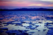 北冰洋是世界上条件最恶劣的地区之一,由于位于地球的最北部,每年都会有独特的极昼与极夜现象出现。每年10月到来年3月,冬半年为"长夜";4月至9月,夏半年为"长昼"。经过一个"白天"和一个"夜晚",就是一年。每逢长夜来临,大自然只有美丽的月光和五彩缤纷的极光,给人们带来光明和安慰。在那无边的冰原上,阵阵五颜六色的极光,像突然升起的节日烟火,一下照亮半边天;他时而如舞在半空的彩条,时而像挂在天际的花幕,时而如探照灯一样直射苍穹。但极光的美,无法掩饰北冰洋恶劣的气候。这儿千里冰封,终年雪飘,天气严寒,冰山林立,这里的海冰,约有300万年的历史。