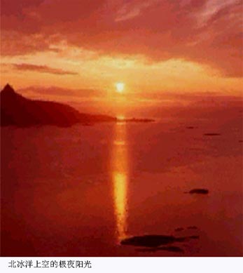 北冰洋上空的极夜阳光