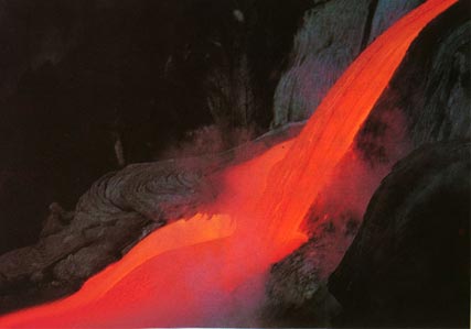 夏威夷火山喷发流淌的岩浆十分壮观