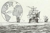 1492年8月3日,哥伦布受西班牙国王派遣,带着给印度君主和中国皇帝的国书,率领三艘百十来吨的帆船,从西班牙巴罗斯港杨帆出大西洋,直向正西航去。经七十昼夜的艰苦航行,1492年10月12日凌晨终于发现了陆地。哥伦布以为到达了印度。后来知道,哥伦布登上的这块土地,属于现在中美洲巴勒比海中的巴哈马群岛,他当时为它命名为圣萨尔瓦多。