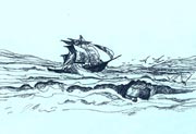 哥伦布把装有羊皮纸信的木桶扔入大海 |