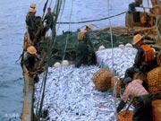 渔获量的大规模增长是第二次世界大战后的事情。据统计,1900年,全世界海洋渔获量才350万吨。1950年达到2070万吨。以后逐年增长,到70年代末,即达到7000万吨。此后在7000万吨上下徘徊,到90年代,又上升到9000万吨。