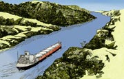 提到位于中东地区的埃及,你也许马上会联想到在这个文明古国里有着闻名世界的金字塔以及狮身人面像。是的,金字塔已不仅是埃及的骄傲和象征,也是闻名世界的古代文化遗产。不过,在埃及还有一条与此相齐名的人工开凿的运河--苏伊士运河,也同样是值得埃及人民骄傲与自豪的。这条位于埃及东北部,北起地中海边上的塞德港、南至红海苏伊士湾的陶菲克港的人工运河,全长195千米(包括两端伸人海中的航道),河面宽300~350米,平均水深20米,可通过150万吨的满载货船和30多万吨的空载货船,平均过河时间为12~13个小时。