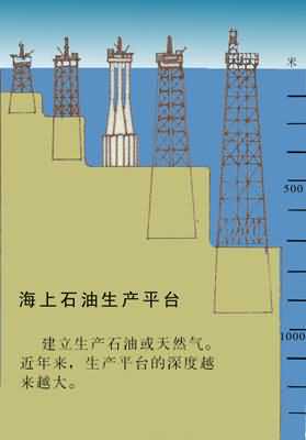 不同深度的石油生产平台