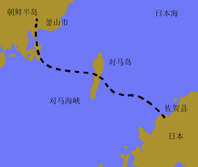 日本、韩国海底隧道路线示意图