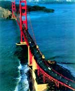 ¡¡¡¡¹¤³ÌÐÛΰ¶øÇÒ½¨Ôì½ÏÔ磬Ҳ×îΪÎÅÃûµÄÒ»×ù¿çº£ÇÅÁºÊÇÃÀ¹ú¾É½ðɽÊеĽðÃÅ´óÇÅ¡£´ËÇźá¿ç¾É½ðɽÍåÍå¿Ú¡£Íå¿ÚÊÇ´¬²°½ø³öº£¸ÛµÄÃÅ»§£¬¾É½ðɽÍåÍå¿Ú¾ÍÊǵ±Ä꺽º£½øÈëÃÀ¹úµÄ½ðÃÅ£¬¹Ê³Æ½ðÃÅ´óÇÅ¡£´ËÇŽ¨³ÉÓÚ1937Ä꣬Çų¤2000ÓàÃ×£¬Á½¸öÖ÷ÇŶÕÖ®¼ä¿ç¾àl 200¶àÃ×£¬¶þÖ÷ÇŶÕÇÅËþ¸ßËÊÈëÔÆ£¬´ï200Ã׳¤µÄ¸ÖÉþ£¬Í¨¹ýÇÅËþбÀ×ÅÇÅÃæ£¬ÇÅÃæ¸ß³öË®Ãæ100¶àÃס£¸ÖÌúÇÅÌåÓÍÆá³ÉéÙºìÉ«£¬ÔÚÖøÃûµÄ¾É½ðÉ½ÔÆÎíÖÐÈôÒþÈôÏÖ£¬±ä»ÃĪ²â£¬Ê®·Ö׳¹Û¡£