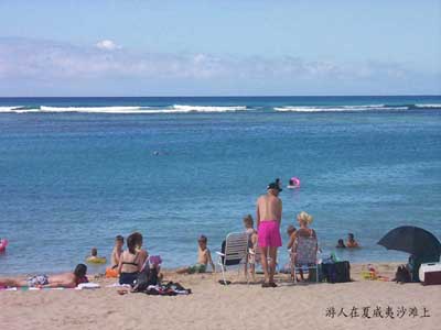 游人在夏威夷沙滩上