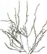 藻体紫红色,软骨质,直立丛生,高12~20厘米。不规则地向各方向分枝,小枝常偏于一侧。枝上生有小育枝, 四分抱子囊和囊果生在小枝上。生长在低潮线附近风浪较大的岩石上。生长盛期5~ 6月。广布于海礁、嵊山、浪岗、普陀山、渔山、洞头、南麂和大渔等地。