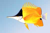 口小,前位。两颌形似镊子的端部,形成平直的口裂。背鳍鳍棘部高,有12—13结棘。胸鳍长,镰刀状。尾鳍近截形。