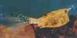 角箱鲀。俗 名:牛角。头、体被甲呈五棱形,眶前棘、腰骨棘各一对。尾鳍具紫蓝色圆斑。体甲黄绿色。体长56厘米。分布地区:南海、东海、黄海、红海、非洲东部和夏威夷海域。