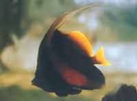 马夫鱼。俗名:关刀蝶。背鳍第四鳍棘及鳍膜呈长鞭状。两眼 间具黑色横带。体侧具2条略斜向后方的黑色横带。体长20厘米。分布地区:南沙群岛、西沙群岛、台湾海峡、非洲东部及夏威夷海域。