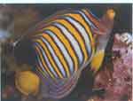 甲尻鱼 。俗名:金毛巾。体侧具8条黑边的蓝紫色横带,带的两端稍向后弯。体长14厘米。分布地区:南海;台湾海域、红海、印度洋和西太平洋热带水域。