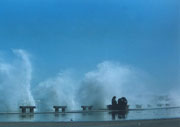 海浪传播有时看起来很快,这只是波形向前传播,海水本身并没有向前移动,犹如麦浪一样,只是麦穗上下颠簸,麦杆仍然扎根在土里。海浪在海上可以水平方向传播,也能垂直向海底传播。在水平方向上海浪传播可以跋涉万里,在太平洋北部的阿拉斯加海岸,可以测量到从万里以外的南极风暴区传播过来的海浪;冲击到英国南岸的海浪,其源地竟是远在1万多公里外的南大西洋风暴区。海浪在水平方向上,能传播如此之远,并维持它的一定波高,海浪的威力是巨大的。