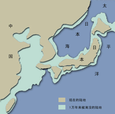 一万年前我国海域的海陆分布示意图