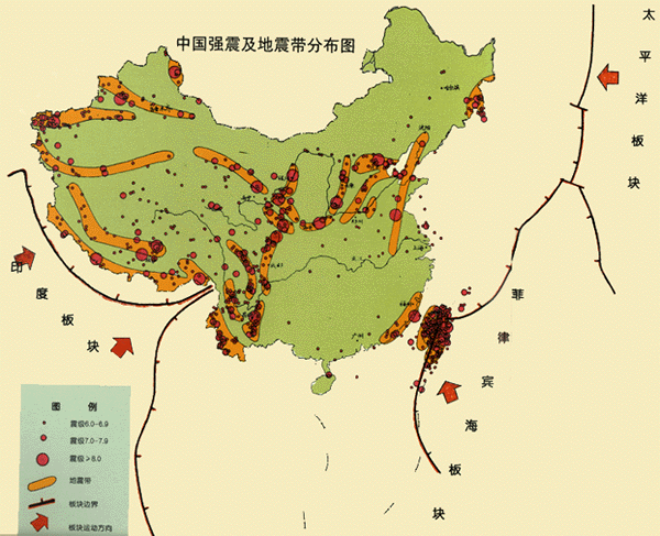¡¡¡¡ÖйúλÓÚÊÀ½çÁ½´óµØÕð´ø¡ª»·Ì«Æ½ÑóµØÕð´øÓëÅ·ÑǵØÕð´øÖ®¼ä£¬ÊÜ̫ƽÑó°å¿é¡¢Ó¡¶È°å¿éºÍ·ÆÂɱöº£°å¿éµÄ¼·Ñ¹£¬µØÕð¶ÏÁÑ´øÊ®·Ö·¢Óý¡£±¾ÊÀ¼ÍÒÔÀ´£¬Öйú¹²·¢Éú6¼¶ÒÔÉϵØÕð½ü800´Î£¬±é²¼³ý¹óÖÝ¡¢Õã½Á½Ê¡ºÍÏã¸ÛÌØ±ðÐÐÕþÇøÒÔÍâËùÓеÄÊ¡¡¢×ÔÖÎÇø¡¢Ö±Ï½ÊС£