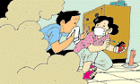 趴在地上,用湿毛巾捂住口、鼻。地震停止后向安全地方转移,要匍匐、逆风而进。
