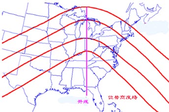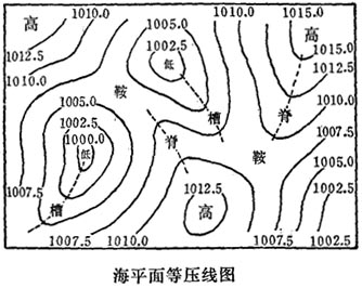 (5)°°ÐÎÆøÑ¹Çø(¼ò³Æ°°²¿)£¬ÊÇÁ½¸öµÍѹÓëÁ½¸ö¸ßѹ½»´í×é³ÉµÄÖмäÇøÓò£¬Æä¸½½ü¿Õ¼äµÈÑ¹ÃæÐÎÈçÂí°°¡£