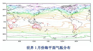从1月海平面气温分布图上可以看出,1月世界气温的分布,具有下列几个特点: