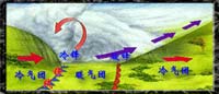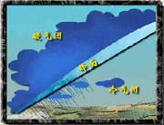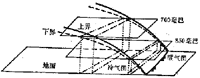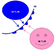 两个性质不同的气团相遇时,它们中间就有一个过渡区域,当这个过渡区域相当狭小时,就叫做"锋"。下面图中的狭长区域,就是锋的所在区域。