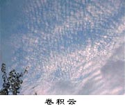 卷积云 云块很小,呈白色细鳞、片状,常成行或成群,排列整齐,似微风吹过水面所引起的小波纹。卷积云只有1类。 另外,每一种云都有它的特殊性,但不是一成不变的。在一定条件下,这一种云可以转变为那一种云,那一种云又可以转变为另一种云。例如淡积云可以发展成浓积云,再发展成积雨云;积雨云顶部脱离成为伪卷云或积云性高积云;卷积云降低成高层云;而高层云降低又可变成雨层云。 卷云|卷层云|卷积云 [上一页] [下一页]