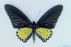 身体黑色,头、颈和胸部侧面有红毛,腹部侧、腹面大部分金黄色。前翅黑,翅脉两侧色淡。后翅亮丽的金黄色,翅脉及斑点黑色,由此又称金裳凤蝶。黑色的前翅,后翅金黄底色配以黑色点线,使该蝶华贵而优雅。本属有称为裳凤蝶属的,国内有3种,由后翅斑点的变异而区别。翅展145-170毫米。 国内分布于陕西、江西、浙江、福建、广东、广西、海南、云南、西藏。