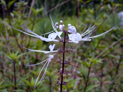 猫须草为唇形科肾茶属植物,由于其雄蕊酷似猫的胡须,故有此名。其花序为轮伞形,在主茎及分枝上又多重地组成顶生总状花序,十分美观。