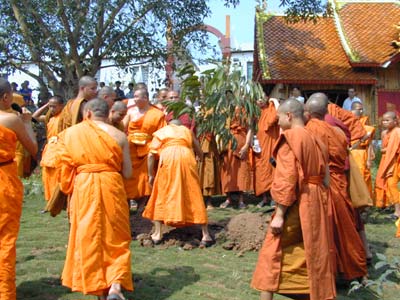 作为一类文化现象的宗教信仰都是在特定的环境条件下产生的,是人们对特殊环境的适应与生存的一种策略。以傣族为代表的各民族,尽管他们的先民的生活环境是由“冷森林”迁徙到“热森林”,但都离不开森林,都是森林民族。这样,宗教信仰文化便成为他们与这里的热带雨林以及其中的动、植物和谐相处,走向协调发展的一种重要武器,也使在本世纪50年代以前,西双版纳还保存有50%的森林覆盖率。