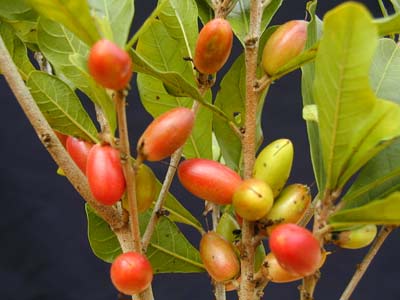 原来,这种具有魔力般的植物就是原产热带非洲的神秘果,它含有一种变味蛋白酶(又称神秘果素),虽然并不能真正地改变食物的味道,但可以改变人的味觉,所以人们吃过神秘果后再吃任何酸的食物都觉得是甜的。在食品工业上,人们常用神秘果来作调味剂。神秘果属山榄科常绿小灌木,树形美观,枝叶繁茂,我国从20世纪60年代引种,现已在许多地区作为园林观赏植物栽培;每年9月份开白色小花,10月份结果,11月份果实由绿色变成红色而成熟。