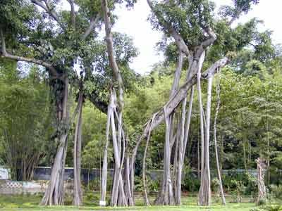 在热带雨林中穿行,常会被一些从空中骤然垂下的柱状根所吸引,或是被斜伸入土的根枝所绊倒。这些根从树枝杆上长出,向下悬垂于空中或植入土中,或者是从树木茎杆基部生出斜伸入土,它们叫支柱根。在潮湿林地,特别是沼泽雨林,支柱根很发达,成为林中奇观。