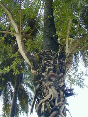 ¡¡¡¡´óÇàÊ÷ÊÇéÅÊ÷ÀࣨҲ³ÆÎªÎÞ»¨¹û£©µÄÒ»ÖÖ£¬ÕâÒ»ÀàȺµÄÖ²ÎïÔÚÎ÷Ë«°æÄÉÈÈ´øÓêÁÖÖÐÓÐ50¶àÖÖ¡£ËüÃǵĹû×ÓÊǺܶàÄñ¡¢ÊÞȡʳµÄÖ÷Òª¶ÔÏó£¬ÓÉÓÚËüÃÇÖÖ×ÓºÜС£¬ÖÖ¿ÇÊ®·Ö¼áÓ²£¬²»ÈÝÒ×±»Äñ¡¢ÊÞÏû»¯ÏµÍ³ÆÆ»µ¶øËæÆä·à±ãµ½´¦´«²¥¡£ÓжþÈýÊ®ÖÖéÅÊ÷µÄÖÖ×ÓÄÜÔÚÒõ¡¢Êª»·¾³µÄÆäËûÊ÷ľ֦èâÉÏ·¢Ñ¿¡¢Éú³¤¡£¿ªÊ¼³¤³öµÄ¸ùÊÇÆøÉú¸ù£¬ÄÜÎüÊÕÉÁÖ¿ÕÆøÖеÄË®·ÖºÍÑø·Ö£¬³ÉΪ¸½Éú×´µÄÖ²Îï¡£ºóÀ´ÕâЩ¸ùϵÑ×ű»¸½×ÅÊ÷ľµÄÖ¦èâ¡¢Ê÷¸ÉÏòÏÂÉú³¤²¢³¤ÈëµØÏ¡£µ±ÎüÊÕÍÁÈÀÖеÄË®·ÖºÍÑø·Öºó£¬Ó×ÃçѸËÙÉú³¤£¬ÅÊÌùÔÚÊ÷¸ÉµÄ¸ùϵҲ³¤³öÖÚ¶àµÄ²à¸ù°üΧÊ÷¸É£¬ÕâЩ²à¸ùÓÖ³¤³ö²à¸ù£¬°Ñ±»¸½×ŵÄÊ÷¸É½ô½ô°üס£¬¶øÇÒÕâЩ¸ùϵÔÚÏ໥½Ó´¥µÄµØ·½ÄÜÓúºÏ¡£ÕâÑù£¬ËüÃDZã¶ÔΪËüÃÇÌṩÖÖ×ÓÃÈ·¢¡¢Ö²ÖêÉú³¤Ìõ¼þµÄÊ÷ľ½øÐнÊɱ£¬¿Éν¡°Íü¶÷¸ºÒ塱¡£½ÊɱֲÎï¶Ô±»½ÊɱµÄÊ÷ľÊÇÊ®·ÖÐײеģ¬È«·½Î»½ø¹¥¡£ÔÚµØÏ£¬ËüÃÇÂÓ¶áË®·ÖºÍÓªÑø£¬Ê¹±»½ÊɱÊ÷ľ´¦ÓÚ¼¢¿Ê״̬£»ÔÚµØÃ棬ËüÄÇÈçÀº×´µÄ¸ùϵ½ô½ôµØ¹¿×ű»½ÊɱÊ÷ľµÄÊ÷¸É¡¢Ö¦Ñ¾£¬ÒÖÖÆÆäÔö´Ö£¬×èÖ¹ÆäË®·Ö¡¢Ñø·ÖµÄÊäËÍ£»¶øÔÚÊ÷¹ÚÉÏ£¬½ÊɱÊ÷ºÜ¿ì·ÖÖ¦¡¢³¤Ò¶£¬Óë±»½ÊɱÕßÕù¶á¿Õ¼äºÍÇÀ¶áÑô¹â¡£ÈÈ´øÓêÁÖÖб»½ÊɱµÄÖ²Î¼¸ºõÎÞÒ»ÐÒÃ⣬¶¼ÒªËÀÍö£¬¶ø½ÊɱÕßÔòÈ¡¶ø´úÖ®£¬°Ñ±»½ÊɱÕߵIJк¡Ò²µ±×÷ÓªÑøÂýÂýÏíÓá£