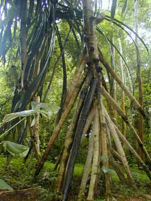这3种植物经过长期的磨练,早已改变了非海边不能生长的习性,逐步适应了热带雨林酸性的土壤、潮湿而较阴暗的林内环境,也改变了种子成熟后萌发的“胎生”特性即种子落地前就在树上萌发长根的习性。然而,也许是“江山易改而习性难移”的某一些遗传基因还在起作用吧,它们在树干的下部还要长出很多的气生根并发展成为支柱根,保持它们原来生长在海滨滩涂上为了“呼吸”和支撑地上植株的习性。