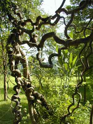 ¡¡¡¡Ê¹È˾ªÆæµÄÊÇ£¬ÓдÖÈç±ÛÍȵľÞÌÙ£¬ËüÃÇ´ÓµØÃæÐ±·ÉÉ϶þÈýÊ®Ã׸ߵĴóÊ÷£¬ÓеĴִóÌÙÌõÐü¹ÒÔڸߴóÊ÷¹ÚµÄÏÂÃæ£¬ÓеϹ×Ô¼º²øÈÆ£¬³É´¹µõµÄ´óС²»Í¬µÄ»·½á¡£Å¼¶û»¹¿É¼ûµ½â¨ºï£¨Macaca mulatta mulatta£©»òÀÁºï£¨Nycticebus coucany bengalensis£©ÔÚÉÏÃæ´òÇïǧ£¬ÓÆÏÐ×ÔÔÚ¡£ÈËÃǶÔËüÃÇÈçºÎÅÊÅÀÉÏÈ¥£¬×ÜÊǾÃ˼¶ø²»½â¡£¾¹ý×Ðϸ¹Û²ì²Å·¢ÏÖ£¬ÔÀ´ËüÃǵÄÉú³¤ºÍÅÊÅÀ»¹ÊÇ˳Ðò½¥½ø£¬¶ø²»ÊÇºÃ¸ßæðÔ¶µÄ¡£ËüÃÇÆð³õÊÇÅÀÉÏСÊ÷¡¢ÔÙ½¥´ÎÍùÖС¢ÉϲãÊ÷ľ¹ý¶É¡£ÔÚÕâ¸ö¹ý³ÌÖУ¬Óöµ½Óб»Åʸ½µÄÊ÷ľËÀÍö£¬ËüÃDZãËæËÀÍö¡¢µ¹µØµÄÊ÷ľ»Øµ½µØÃæ»òϲãµÄÊ÷ľ¡£ÏÂÂäµÄÌÙ×ÓÓÖÍçÇ¿¼ÌÐøÉú³¤£¬Ì¤ÉÏÁËеÄÅÊÅÀÕ÷³Ì£¬·´¸´¶à´Î£¬±ãÐγÉÁËÉÏÊöµÄ¶à×˶ø×³ÀöµÄ¾°¹Û¡£