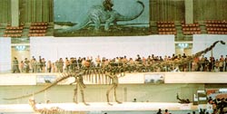 后来,科学工作者和古生物技术工作者一起将合川马门溪龙装架陈列。这条长达22米的庞然大物一直担当着中国最大恐龙的英名。它还曾远赴日本、香港、泰国、新加坡等国家和地区进行展出,得到了各界人士的崇仰,成为了一名举世闻名的科普明星。